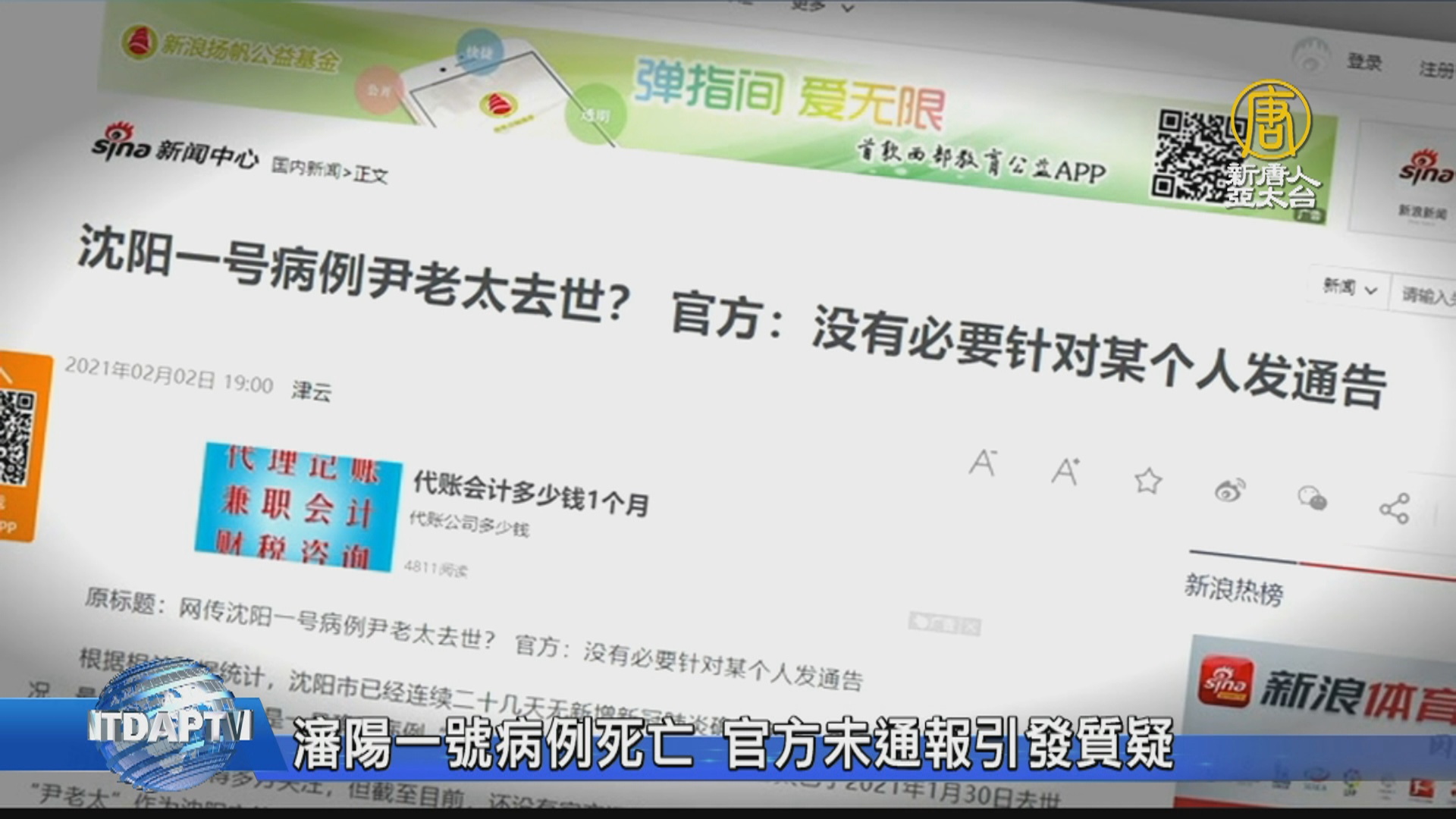 【新唐人亞太台 2021 年 02 月 04 日訊】歡迎回來。帶您關心中國,遼寧省瀋陽市,去年底爆發中共病毒疫情,一號病例尹姓老太太是超級傳播者,疑感染至少27人。近日傳出,老太太已於1月30號去世,但截至目前,官方未通報此事,引發外界質疑。
