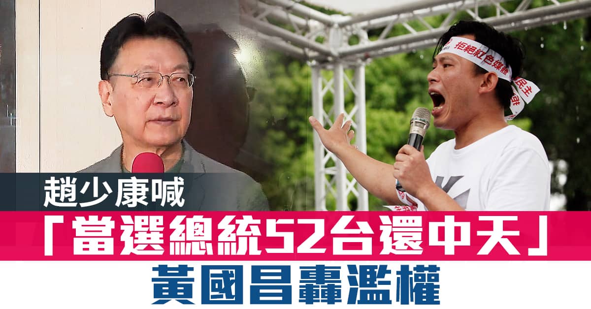中廣董事長趙少康重回國民黨後話題不斷,今(4日)趙少康受訪時竟宣告若當選總統「會把52台還給中天」。對此,前立委黃國昌質疑「這是總統的職權嗎?總統可以幹這種事嗎?」怒批趙少康當選前就大剌剌宣告當選後要違法濫權。