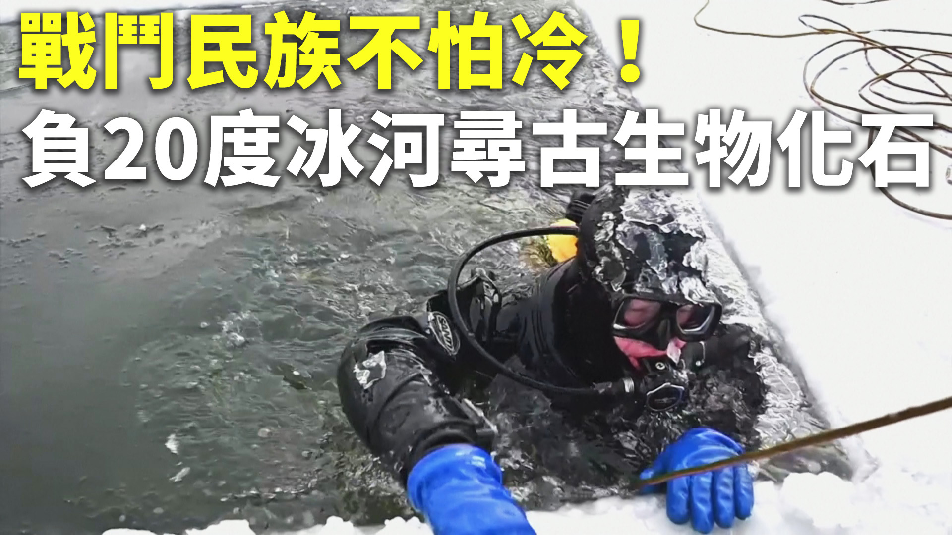 在當地氣溫下降到零下20至25度,潛水員豪不猶豫就跳下水,在水下約3公尺處尋找化石。