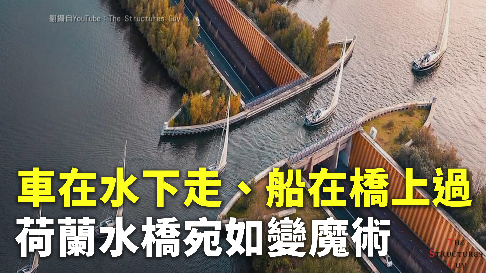 【新唐人亞太台 2021 年 03 月 05 日訊】通常人們都會認為,橋是給車輛行駛的,但荷蘭卻有一座水橋,專門給船隻在走的。更妙的是,這座橋的下方,還有車輛通行,形成了「車在水下、船在橋上」的特殊景觀。