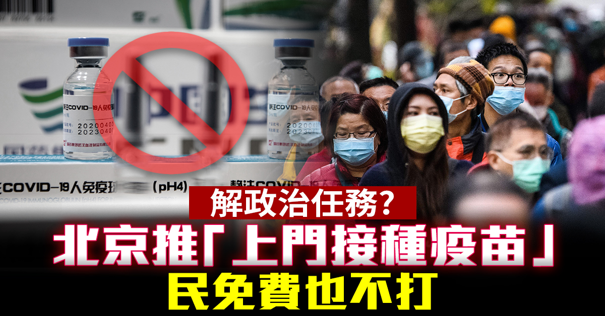 解政治任務?北京推「上門接種疫苗」民免費也不打!