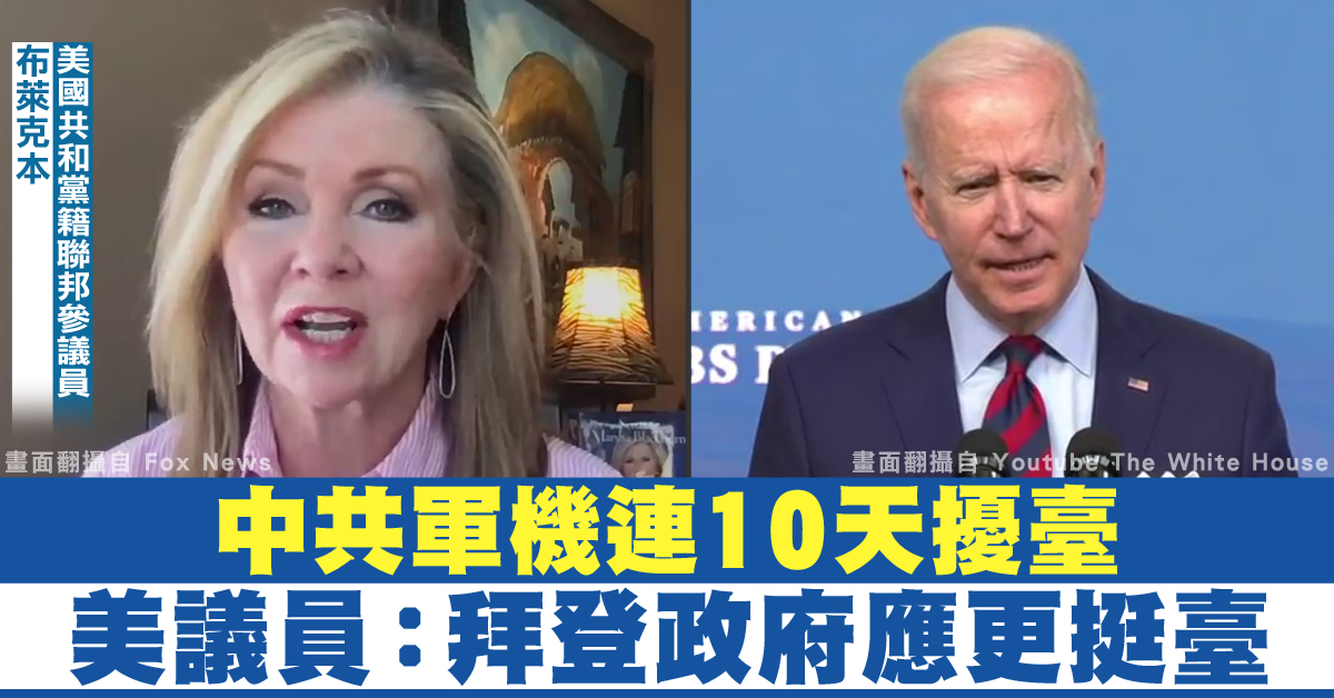 11號,美國共和黨籍聯邦參議員布萊克本(Marsha Blackburn)接受美國福斯新聞(Fox News)專訪。被問到中共對臺威脅時,布萊克本表示,拜登政府應該要傳遞更多挺臺訊息,並表示,保護臺灣的同時,也是在對盟國,甚至是敵國傳遞支持民主的訊息。