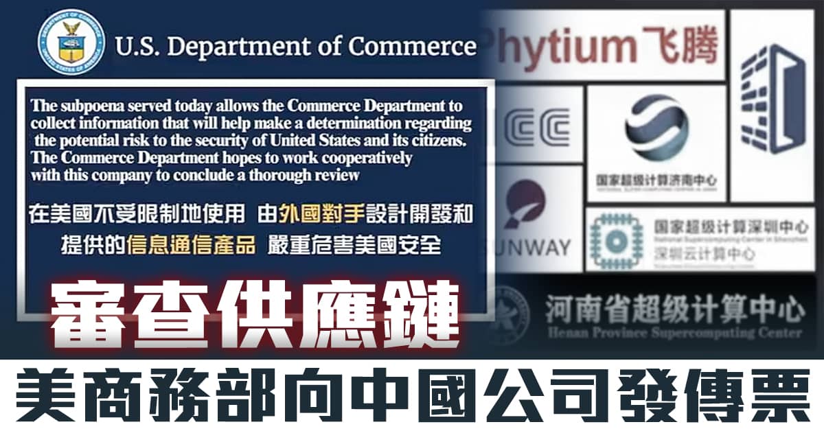 審查供應鏈 美商務部向中國公司發傳票