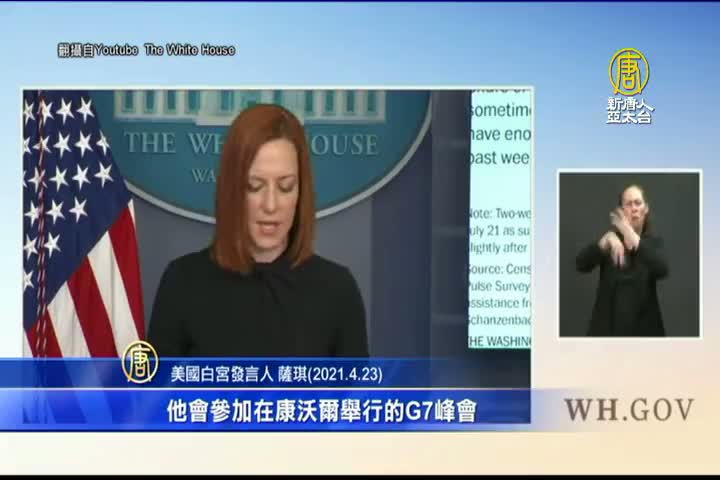 【新唐人亞太台 2021 年 04 月 24 日訊】好,就在美國總統拜登與全球領袖視訊峰會之際,白宮宣布拜登將在六月前往英國,進行首次的海外出訪,出席七國集團峰會,白宮國安副顧問辛格透露,拜登將會在G7會議上呼籲成員國,就北京在新疆迫害維吾爾人並強制勞動的政策,向中共施壓。