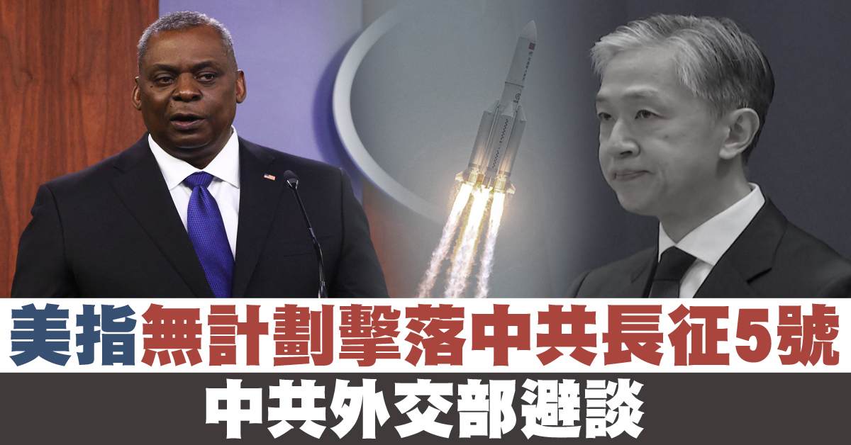 6號,美國國防部長奧斯汀(Lloyd Austin)在記者會上被問到,預估長征5號火箭什麼時候墜落,有必要的話,是否會將其擊落?對此,奧斯汀表示。