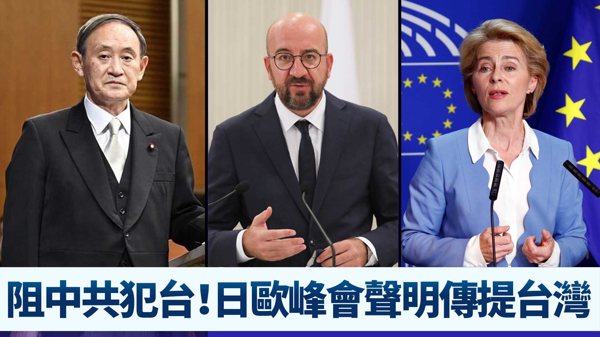 【新唐人亞太台 2021 年 05 月 27 日訊】日本與歐盟預定27日以視訊的方式舉行日歐峰會,日本《產經新聞》報導,包括日本首相菅義偉、歐洲理事會主席米歇爾,及歐盟執行委員會主席馮德萊恩都會出席。會後的聯合文件可望強調台灣海峽和平穩定的重要性。報導指出,日美歐透過這種形式確定三方的合作,以牽制中共對台灣使用武力。4月16日美日峰會發表的聯合聲明強調「台灣海峽和平穩定的重要性,敦促和平解決兩岸問題」。接著5月21日的美韓峰會發表的聯合聲明也明記「守護台灣海峽和平穩定的重要性」。