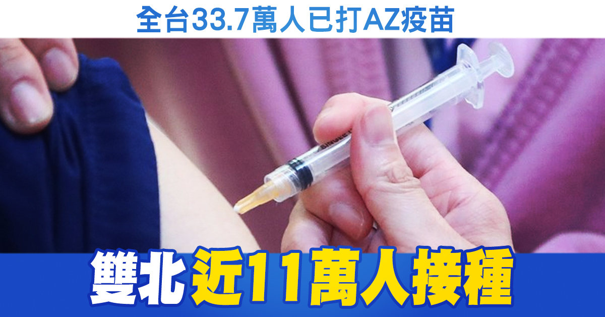 全台33.7萬人已打AZ疫苗 雙北近11萬人接種