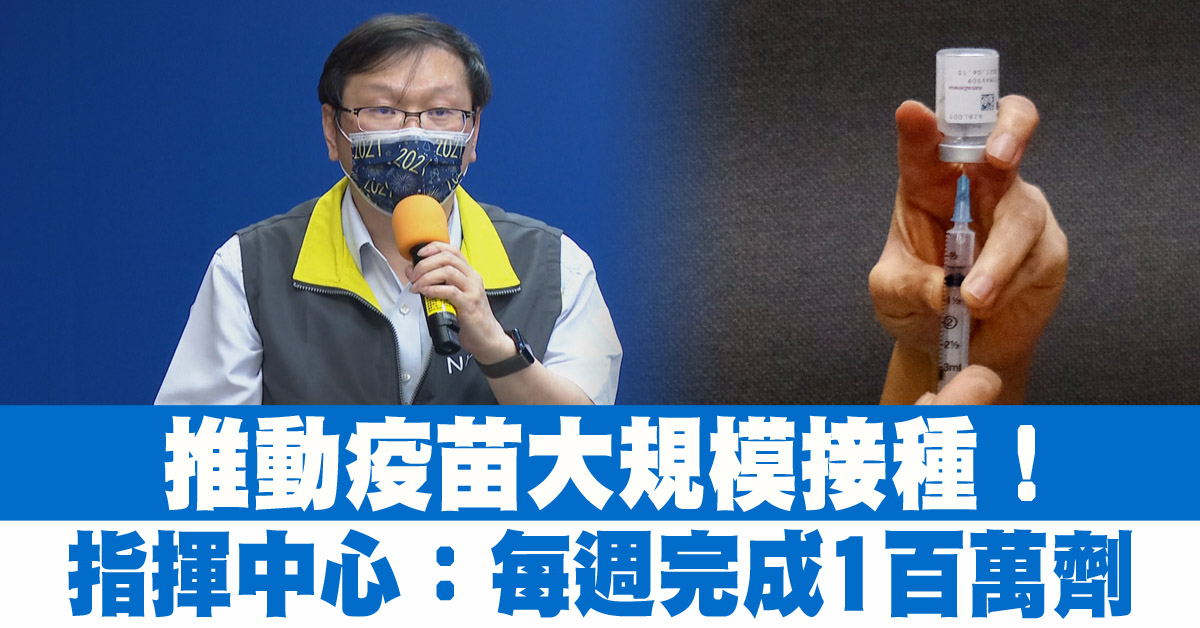 推動疫苗大規模接種!指揮中心:每週完成1百萬劑