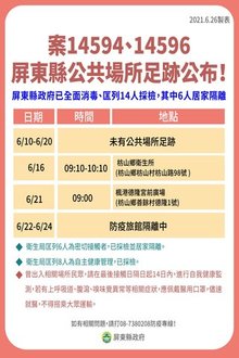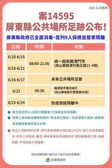 枋山群聚再增3例足跡公布 屏成立指揮所