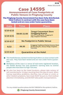新增的三例都是「14298」同住親友,分別為案號「14595」50歲妻子、「14596」88歲母親及負責照顧的37歲外籍看護「14594」,其妻在統一超商楓港門市工作,相關足跡均已消毒,曾出入相關場所民眾請進行自我健康監測,若有上呼吸道、腹瀉、嗅味覺異常等相關症狀,應佩戴醫用口罩,儘速就醫。
