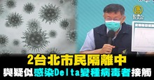 2台北市民隔離中 與疑似感染Delta變種病毒者接觸