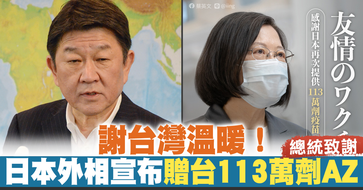 謝台灣溫暖!日本外相宣布贈台113萬劑AZ 總統致謝