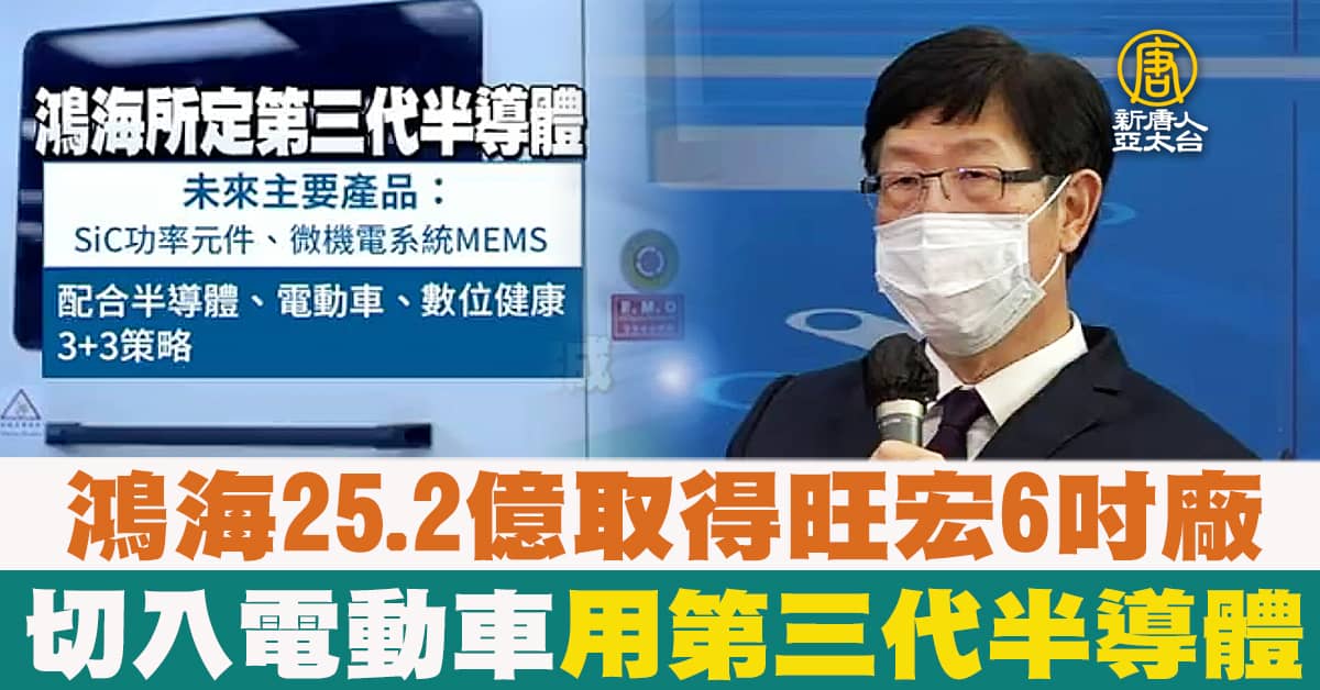 鴻海25.2億取得旺宏6吋廠 切入電動車用第三代半導體