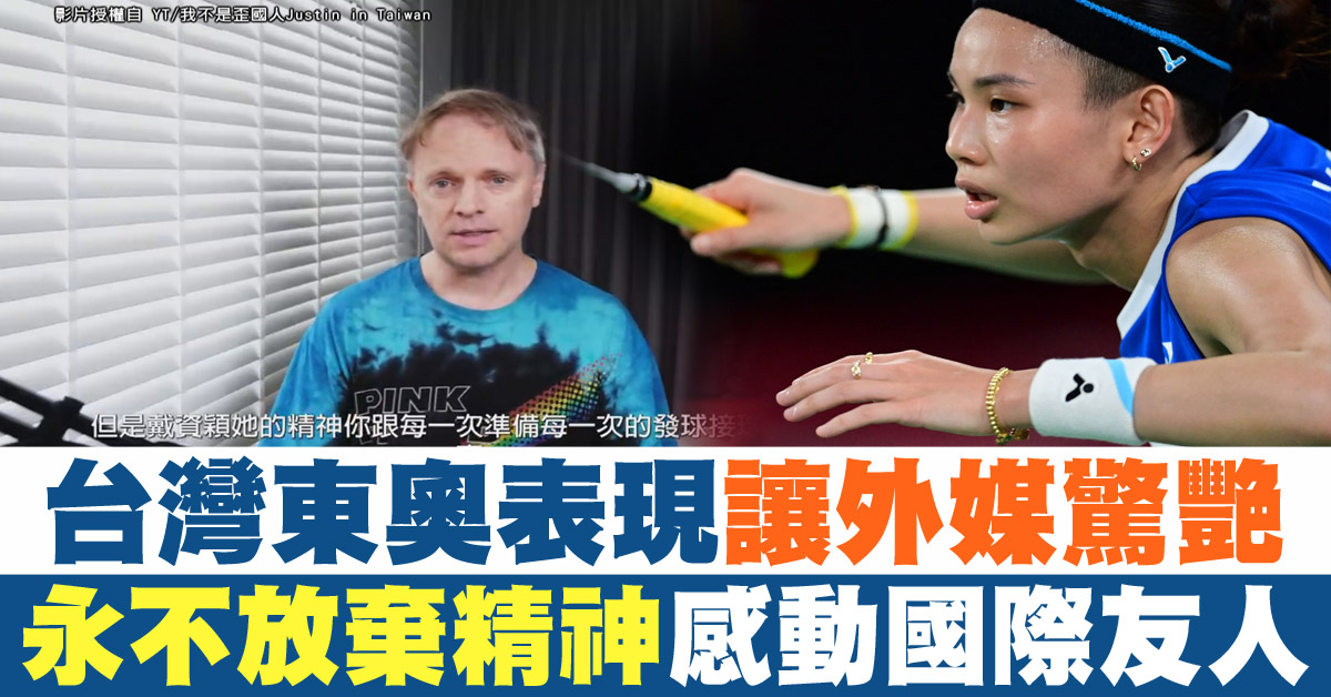 羽球球后戴資穎在東奧羽球女單決賽中的精彩表現,讓外國朋友也忍不住感動哭了。在台灣國立大學任教的南非籍教授,分析了台灣這次奧運大放異彩的原因,除了謙虛力求進步的態度,還有就是永不放棄的精神。