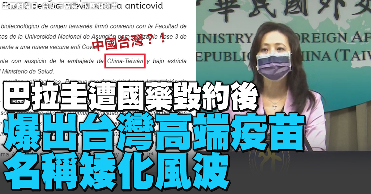 巴拉圭遭國藥毀約後 爆出台灣高端疫苗名稱矮化風波