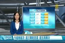 2021-11-22 08:40:04歡迎您收看11月22日的早安新唐人,我是唐潔安,先來帶您關心天氣。又是一個星期的開始了,受到冷空氣影響,今天由北往南愈晚愈冷,預估最冷時間在明天(23日)清晨,中部以北低溫約攝氏13度至15度,預計星期三24日白天就會開始緩慢回溫。但26日起又有一波冷空氣南下。本週天氣多變,提醒您留意,帶您一起來看到國際媒體重要訊息。