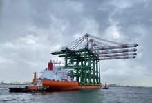 2022-08-01 14:32:01長榮海運斥資百億,購置19部遠端操控橋式機及56部自動化門式機,打造高雄港第7貨櫃中心機具黃金陣容。高雄港務分公司指出,首批機具今天運抵高雄港,開啟營運序幕。