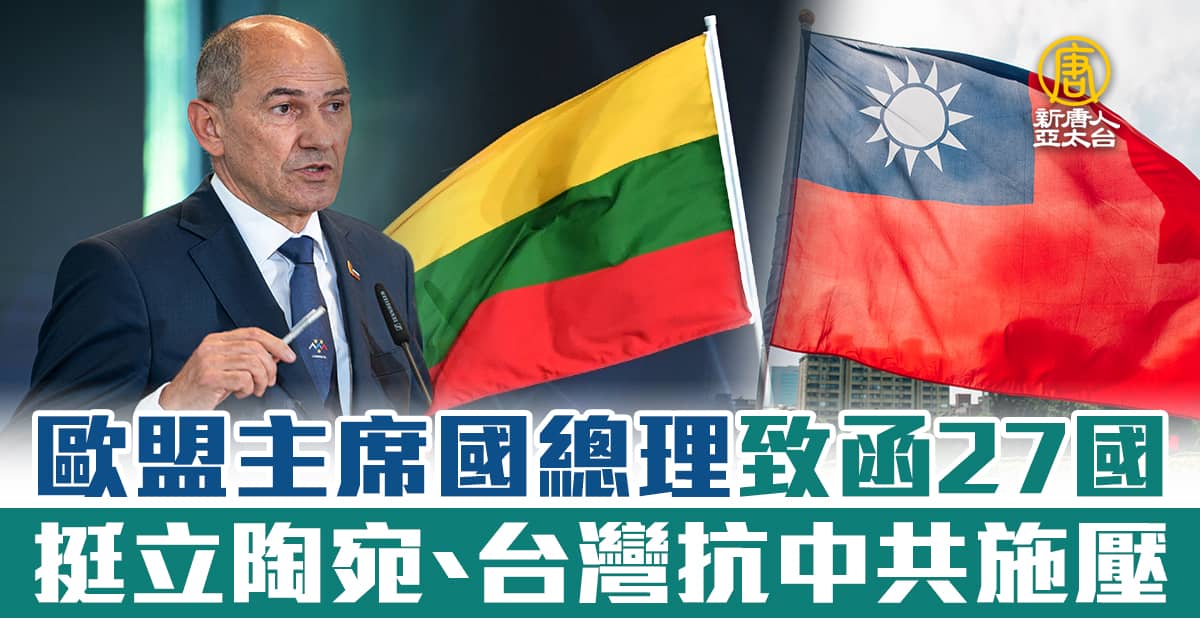 【新唐人亞太台 2021 年 09 月 15 日訊】歡迎回來,國際抗中共霸凌,13日,歐盟輪值主席國斯洛維尼亞的總理楊薩薩(Janez Janša),發表公開信,致函歐盟各成員國的領導人, 呼籲各國應該力挺立陶宛與台灣發展關係,抗拒中共施壓。楊薩強調,即使歐盟有歐方的「一中政策」,但不可否認的是,台灣仍是歐盟的重要夥伴。所有歐盟成員國,都是主權獨立國家,完全有權跟台灣發展關係,各成員國必須對立陶宛展現更積極和堅定的聲援。「我們必須向中共表明,我們站在一起、不會讓中共威脅我們的任何人。」