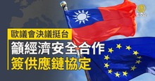 歐議會決議挺台 籲經濟安全合作.簽供應鏈協定