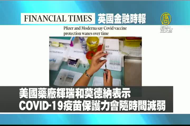 【新唐人亞太台 2021 年 09 月 17 日訊】接著是英國金融時報的報導:美國藥廠輝瑞和莫德納表示,COVID-19疫苗保護力會隨時間減弱。