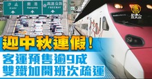 2021-09-17 21:58:11迎接中秋四天連假,台灣的國道客運業者和旅遊預訂平台,推出折扣優惠,熱門路線在週五和週六的預售已超過90%,雙鐵運量也爆增,台鐵尖峰時段售出90%車票,加開137個列次,高鐵也加開184班次,紓解返鄉人潮。