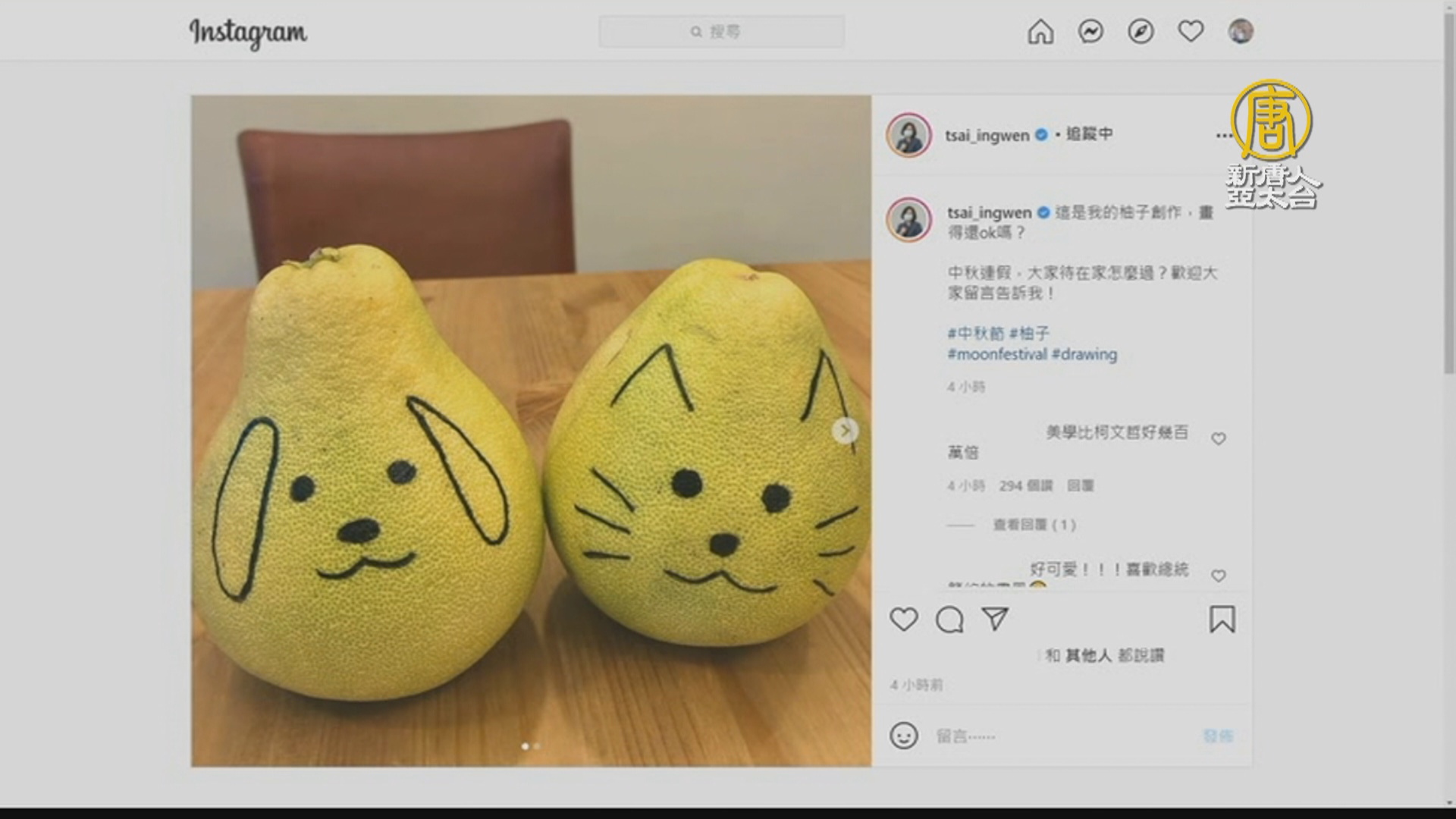 拿著黑色簽字筆,總統蔡英文專注在柚子上畫啊畫,看似很滿意。IG公布作品成果,原來畫得是蔡英文的愛貓、愛狗,直言我畫的柚子,貓咪眼睛好像一大一小。但可愛畫風,萌翻不少人,網友紛紛留言好可愛。總統也在IG上標記副總統賴清德和綠營縣市首長,要來比畫功。