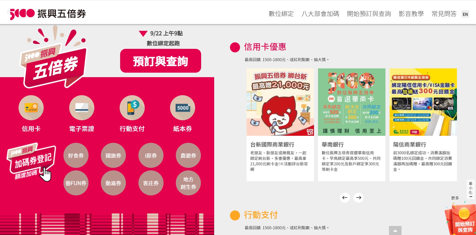 五倍券數位綁定9.22開跑 推各項限定優惠