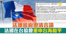 2023-04-12 12:32:01新聞開始先來關心 ,國際高度關注台海安全之際,法國總統馬克宏先前稱歐洲要避免因台灣議題被捲入美中衝突。這番言論受到各界的質疑。法國總統府「愛麗舍宮」,對此特別澄清說,美國是法國的盟友,兩國之間共享著價值觀。而法國在台協會今天(12日)也在臉書上重申,法國在台灣議題上維持一致的立場,法國與其合作夥伴,強調台海和平穩定的重要性,並呼籲以和平方式解決兩岸爭端。另外,與馬克宏同一政黨的,國民議會友台小組主席博多黑,在接受中央社採訪時表示,台灣有事,歐洲和全球都會有事,而他也會持續推動台法之間的關係。