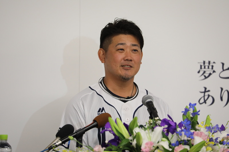 記者會上被問到最先向誰透露要引退的念頭,松坂大輔忍不住哽咽說是家人和妻子。