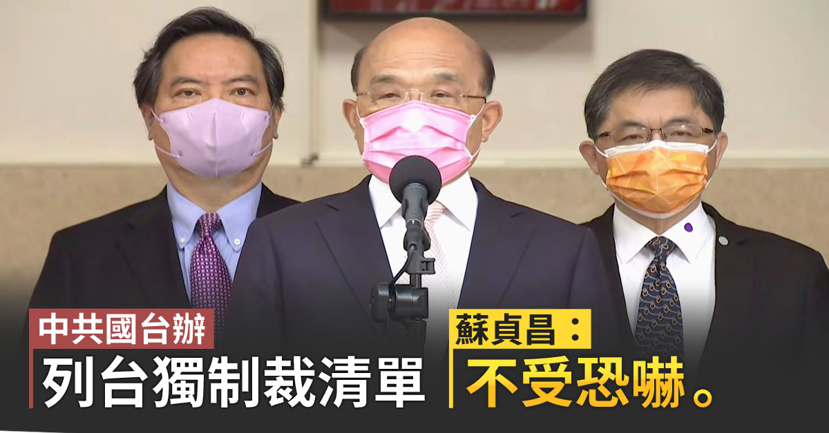 中共國台辦列台獨制裁清單 蘇貞昌:不受恐嚇