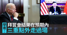 2021-11-16 13:41:12美國總統拜登與中國國家主席習近平進行首次會談,在開放拍攝的會談中,拜登表示,中美領導人有責任確保兩國之間的競爭,不會演變成衝突。而習近平則是說了兩次「各自」,提到中美要「辦好各自國內的事」。