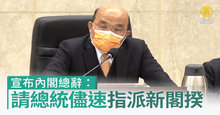 2023-01-19 21:56:47好,新年連續假期就要來了,週四是新年前最後一天上班日,立法院也趕在年前,審完中央總預算,這也意味著內閣改組成為下一個政壇聚焦的議題。下午,閣揆蘇貞昌按慣例到立法院致意,感謝立委通過總預算案,隨後到總統府與蔡英文會談。傍晚,蘇貞昌在臉書發文,表示將率內閣總辭,並祝福新內閣能做得更好。