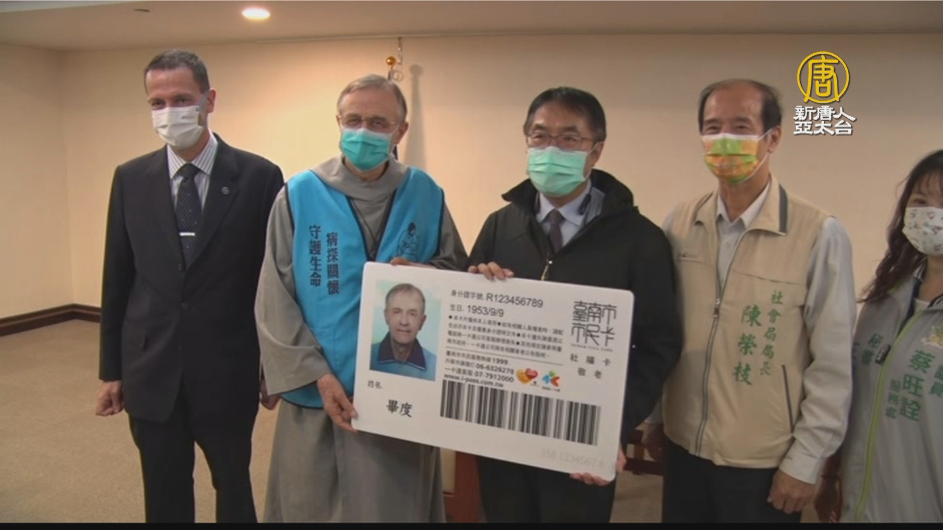 【新唐人亞太台 2021 年 11 月 23 日訊】台南市政府週二(23日),擴大敬老卡發卡對象,開放給持有我國永久居留證,且居留地為台南市的65歲以上外籍人士申辦。記者會中,也將第一張敬老卡,發給在台南居住20多年的畢度神父,希望能讓他和在地人一樣,享受長者樂齡生活。