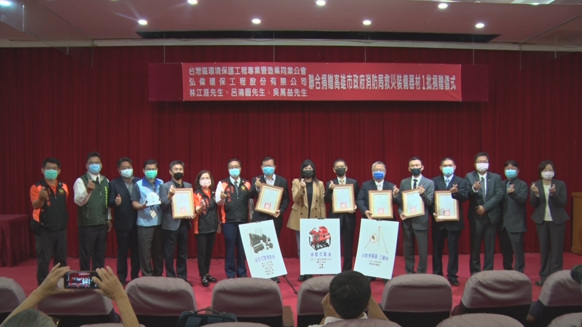 捐贈的民間團體包含台灣區環境保護工程專業營造業同業公會、弘偉環保工程股份有限公司、定洋實業股份有限公司、林江涯先生、呂鴻圖先生等,計捐出電動捲揚器1組、移動式幫浦2台、救助固定式墊塊套組2組,及救助頭盔150頂等消防裝備予市府消防局。