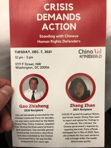 兩年度的林昭自由獎,12月7日頒給維權律師高智晟(2020年)、公民記者張展律師(2021年)。