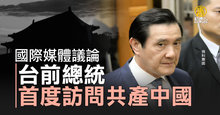 2023-03-20 13:22:04前總統馬英九訪問中國,受到國際媒體關注,包括美國、英國、日本和印度媒體都進行了報導。路透社指出,「這將是台灣現任或退休總統首次訪問這個共產主義國家。」「這趟行程的時間適逢北京和台北緊張局勢加劇,因為中共持續施加軍事和政治壓力,試圖讓民主選舉的台灣接受中共統治。馬英九仍然是台灣反對黨國民黨的高層,他在2015年底,在台灣現任總統蔡英文當選前不久,與中國國家主席習近平在新加坡會談。」金融時報報導寫到「馬英九訪問中國的時間,與台灣總統蔡英文計畫訪問美國的時間大致相同,美國是唯一保證台灣安全的國家。」