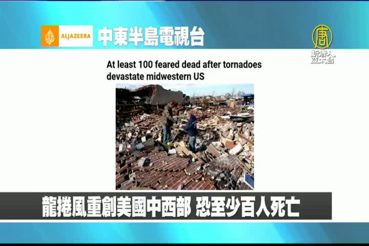 【新唐人亞太台 2021 年 12 月 13 日訊】來看到中東半島電視台報導:龍捲風重創美國中西部,至少6個州受影響,死亡人數恐超過百人。