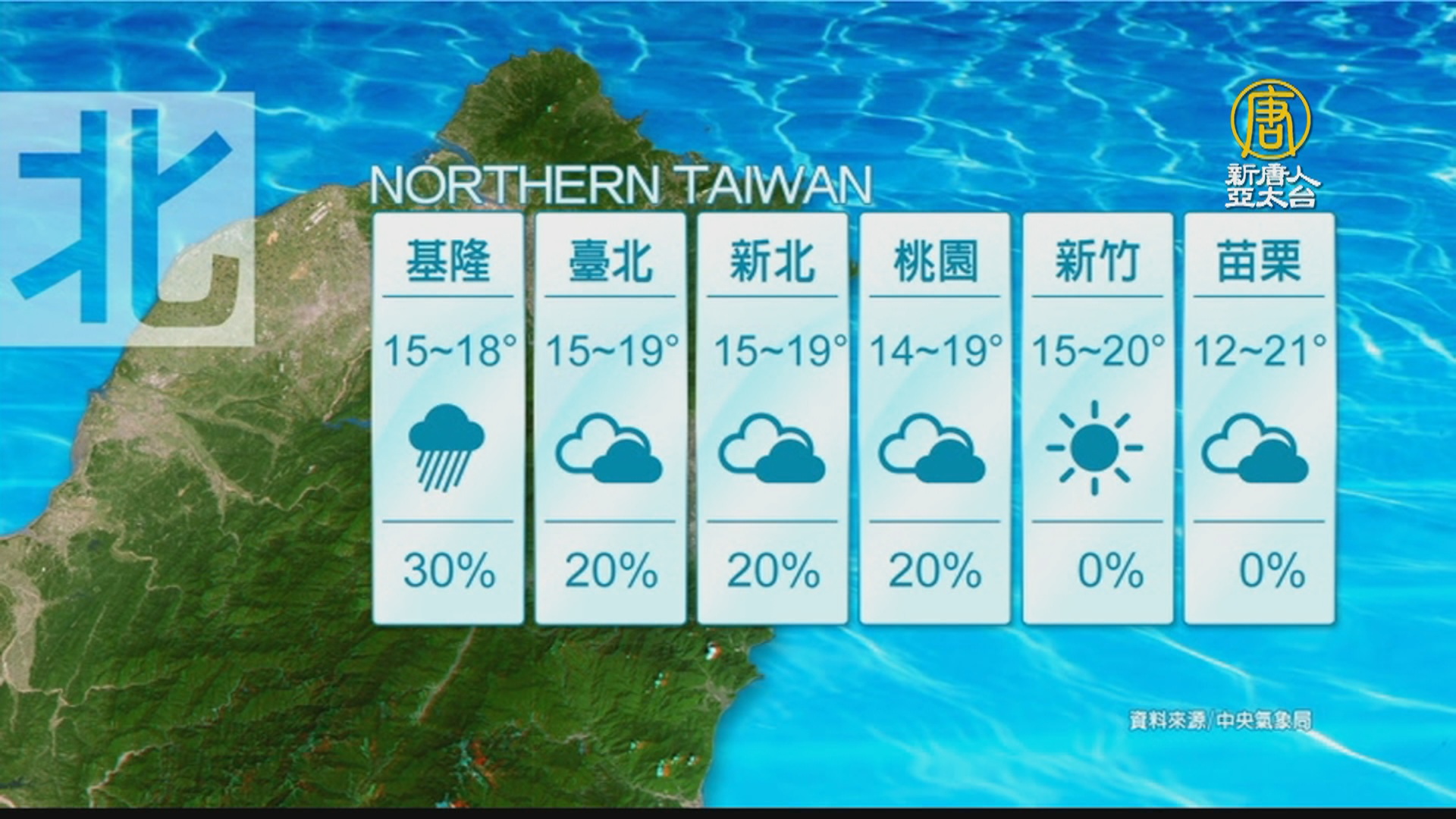 2022-12-12 08:13:36歡迎您收看12月12日的早安新唐人,我是唐潔安,先來帶您關心天氣。本週一波波更強冷空氣南下,觀眾朋友要持續多加衣物保暖,週三(14日),先是東北季風增強。週六(17日),入冬首波大陸冷氣團南下,中部以北低溫下探13度,預估週六,清晨北部三千公尺以上高山,有機會迎來初雪。帶您一起來看到國際媒體重要訊息。