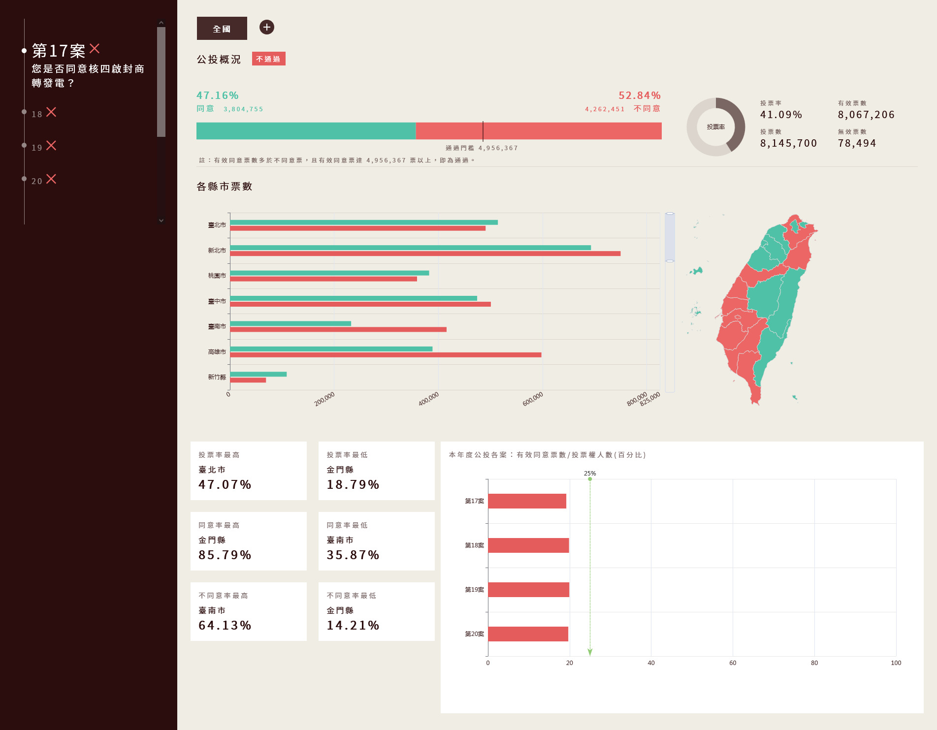 第17案反核四公投結果[翻攝自中選會網站]