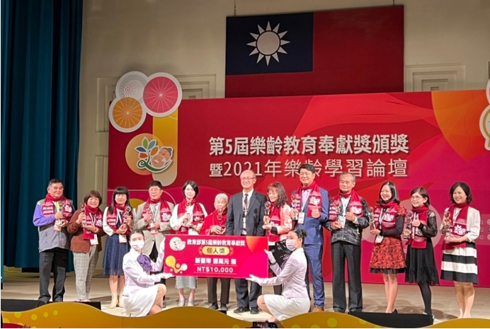教育部12月16日舉辦「第5屆樂齡教育奉獻獎頒獎暨2021年樂齡學習論壇」,表揚全國推動樂齡學習工作者。(高雄市教育局 提供)