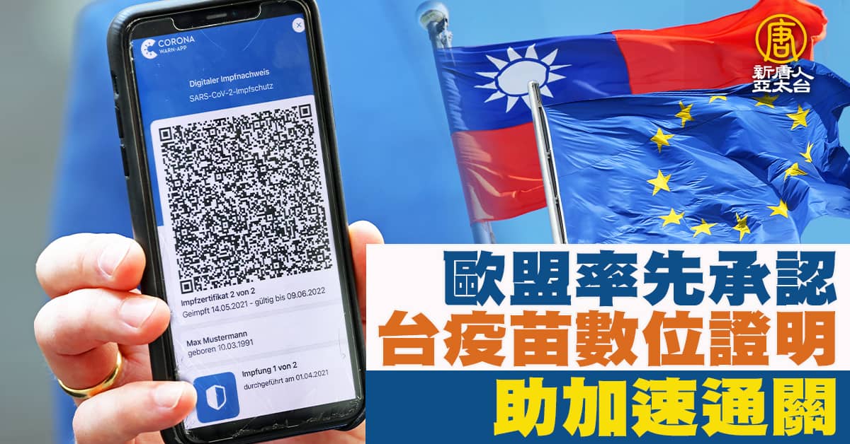 歐盟率先承認台疫苗數位證明 助加速通關