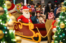 根據中央氣象局低溫特報,大陸冷氣團或強烈大陸冷氣團南下、26日到28日清晨各地天氣偏冷,25日晚間到26日台北市、新北市及金門縣局部地區更有攝氏10度以下氣溫發生機率,提醒民眾耶誕假期出遊務必留意保暖。圖為民眾與耶誕老人造景開心合影,歡度佳節。(圖/中央社)