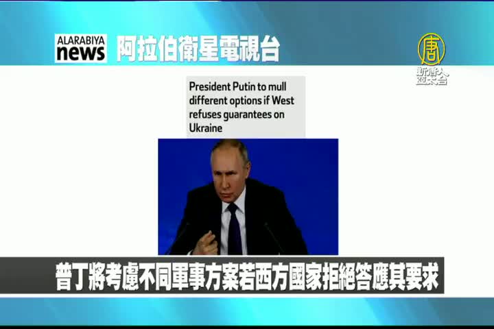 【新唐人亞太台 2021 年 12 月 27 日訊】來看到阿拉伯衛星電視台報導:俄羅斯總統普丁表示,如果北約沒有拒絕烏克蘭和其他前蘇聯國家的加入,並減少在中歐和東歐的軍事部署,俄羅斯將會考慮不同軍事措施因應。