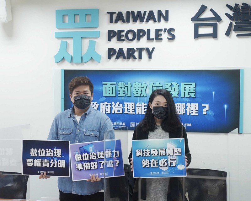 立法院將表決是否三讀通過「數位發展部組織法草案」。稍早立法院台灣民眾黨團副總召高虹安(右)、總召邱臣遠(左)28日舉行記者會,表示對此樂觀其成,但呼籲政府應解決當前數位治理能力缺乏的問題。之後立法院會今天三讀修正通過行政院組織法部分條文,增設數位發展部。(圖/中央社)