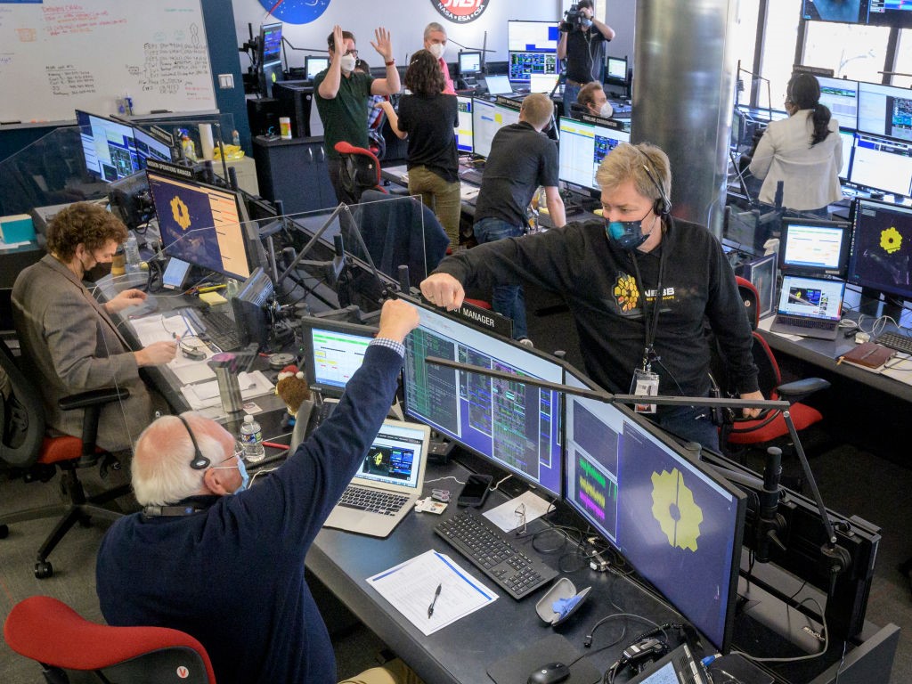 韋伯太空望遠鏡(James Webb Space Telescope)主鏡翼最後一面側翼確定部署完成的訊息回傳後,控制室裡的工程團隊爆出熱烈歡呼。