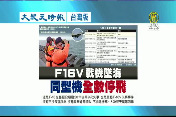 【新唐人亞太台 2022 年 01 月 12 日訊】接著看到大紀元時報台灣版報導:F16V戰機墜海,同型機全數停飛。