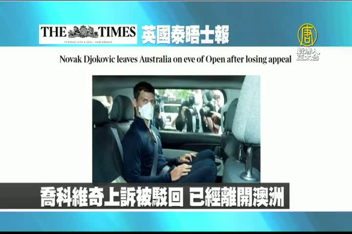 【新唐人亞太台 2022 年 01 月 17 日訊】來看到英國泰晤士報報導:塞爾維亞網球名將喬科維奇因疫苗問題,簽證遭澳洲政府取消,上訴被駁回,已經離開澳洲,將缺席澳洲網球公開賽。