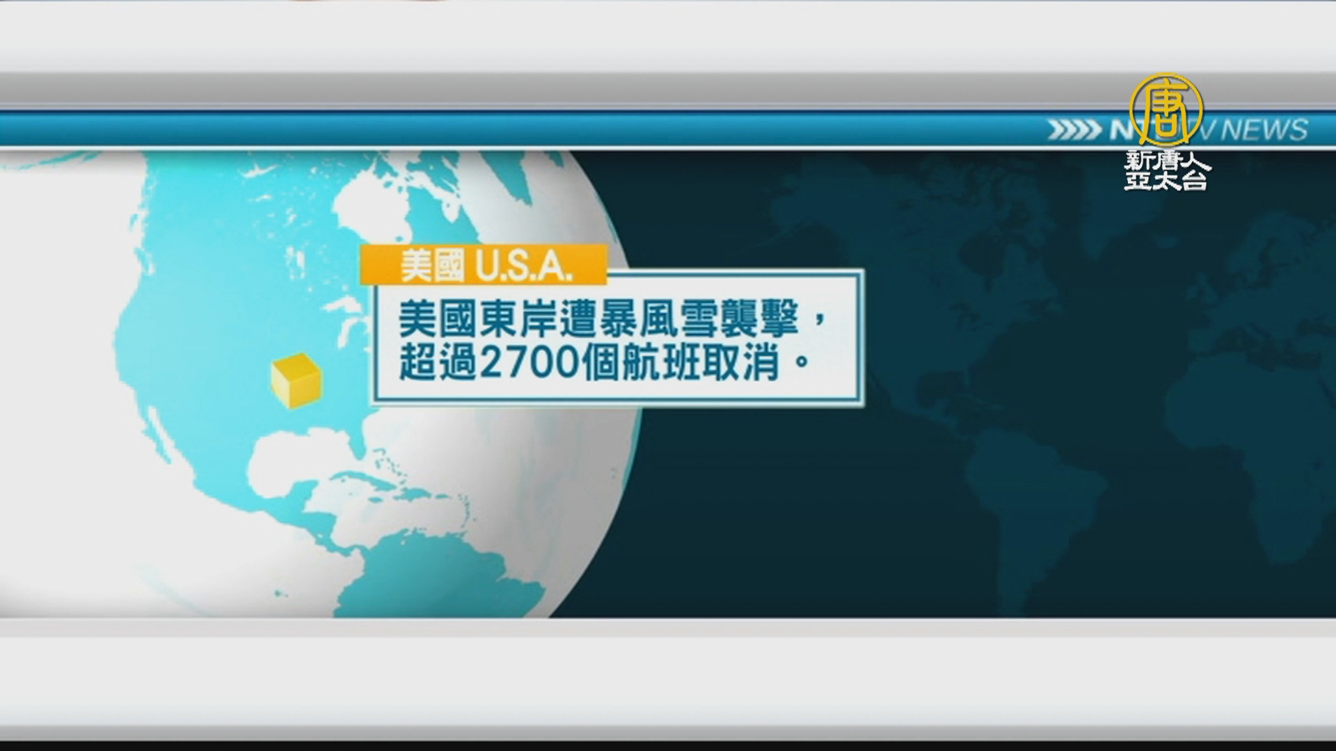 美國東岸遭暴風雪襲擊,超過2700 個航班取消。