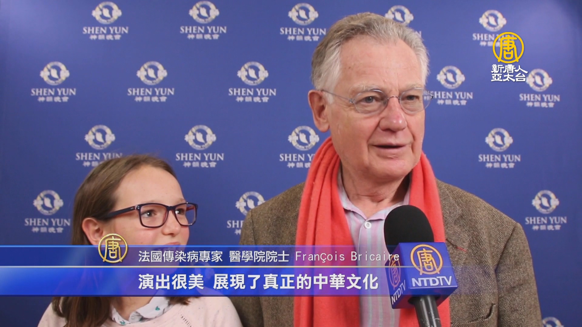 法國傳染病專家,國家醫學院院士 Francois Bricaire:「演出無與倫比,感人至深。演出很美,展現了真正的中華文化,我們很榮幸的能欣賞到神韻演員非凡的舞姿和整體配合。」