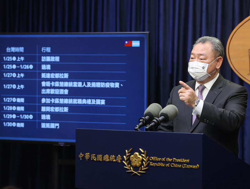 張惇涵說,特使團將在1月25日啟程,1月27日抵達宏都拉斯,1月30日返回國門,預計6天5夜;為了旅途安全便利,訪團有過境安排,過境行程待確認後,進一步向外界報告。